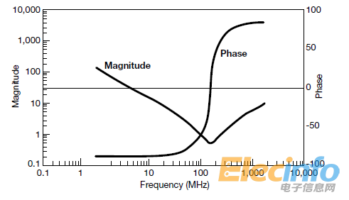 圖2 1000-pF陶瓷電容器的典型阻抗幅相特性