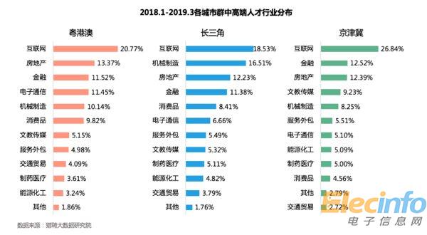2018.1-2019.3各城市群中高端人才行業(yè)分布