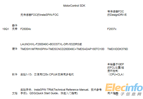 MotorControl SDK的首個版本包括表1中所示的支持。