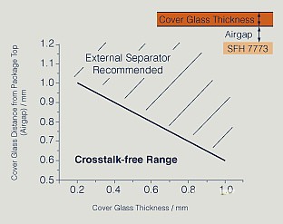 近接傳感器通過接收物體所發(fā)射光信號的反射來檢測該物體,但是智能手機蓋等也會將光線反射回傳感器。這種所謂的串擾通??赏ㄟ^安裝光學屏障來攔截,也可以通過將發(fā)射器安裝在一定距離之外來防止蓋子反射的光信號到達檢測器。但是,以上兩種方法都極其復雜?,F(xiàn)在,有了歐司朗開發(fā)的 SFH 7773,設計人員就不必再擔心串擾問題了,這是因為該裝置內(nèi)的發(fā)射器和檢測器芯片之間的距離足夠遠,而且孔徑光闌已集成在封裝內(nèi)避免了串擾或大幅度地抑制了串擾。