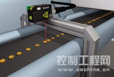 圖2 使用激光傳感器傳送帶上的小型元器件進行可靠檢測。