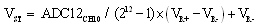 對(duì)于12位的ADC模塊,VST可以通過(guò)下面的A/D轉(zhuǎn)換公式求得: