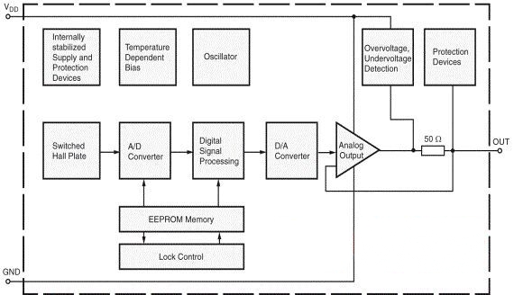 HAL1820是一種通用的基于霍爾效應(yīng)的線性模擬輸出磁場(chǎng)傳感器。作為Micronas可編程線性霍爾傳感器家族的一名重要成員,它可以通過(guò)調(diào)制供電電壓以實(shí)現(xiàn)編程,無(wú)需額外的電壓編程引腳;可于-40℃至170℃的寬Tj結(jié)溫范圍內(nèi)工作,并保持高精度,其可編程溫度特性基本上可以匹配所有常見(jiàn)的磁性材料;同時(shí),多種參數(shù)都可在非易失性?xún)?chǔ)存器里進(jìn)行編程修訂,能夠滿(mǎn)足工業(yè)和汽車(chē)應(yīng)用的嚴(yán)格要求。