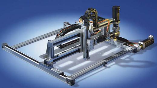 圖1是一個典型的3D直角坐標機器人,它由X軸,Y軸,Z軸及驅(qū)動電機組成。此外一個完整的機器人系統(tǒng)還需要控制系統(tǒng)和手抓。