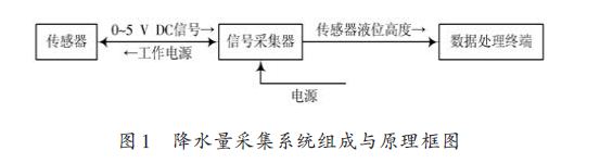 降水量采集系統(tǒng)由降水量傳感器、信號(hào)采集器和作為數(shù)據(jù)處理終端的計(jì)算機(jī)三部分組成。其組成與原理框圖如圖1所示。