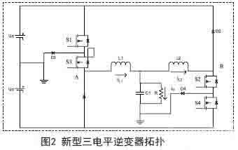 通過在雙Buck逆變器拓?fù)浣Y(jié)構(gòu)上進(jìn)行優(yōu)化,用兩個(gè)功率管和快恢復(fù)型二極管的組合開關(guān)電路(即S1&S3&D3和S4&S2&D4)替代原先的橋臂上的功率管。得到如圖2所示的新型三電平雙Buck逆變拓?fù)浣Y(jié)構(gòu)。