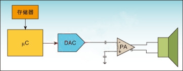 這個(gè)簡單的原則可能最為重要,但卻經(jīng)常被系統(tǒng)設(shè)計(jì)者所忽略。功率放大器無法區(qū)分噪音、咔嗒聲和信號。如果過早地開啟功放,它會不加區(qū)分地放大所有輸入信號。便攜式產(chǎn)品播放電路通常包含數(shù)字信號存儲器、數(shù)模轉(zhuǎn)換器(DAC)、功放、揚(yáng)聲器或耳機(jī)(圖1)。存儲器中的數(shù)字信號經(jīng)過解碼后發(fā)送到DAC進(jìn)行轉(zhuǎn)換,DAC的模擬輸出通過電容交流耦合到功放的輸入端,放大器必須能夠提供足夠的電流驅(qū)動低阻揚(yáng)聲器。如上所述,放大器使能后將放大進(jìn)入其輸入端的任何信號,包括有用信號、噪聲、咔嗒或嘭嘭聲。