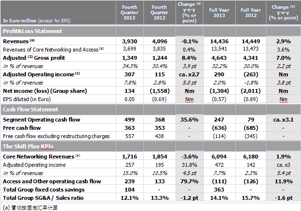 阿爾卡特朗訊發(fā)布2013年度第四季度及全年財(cái)報(bào)
