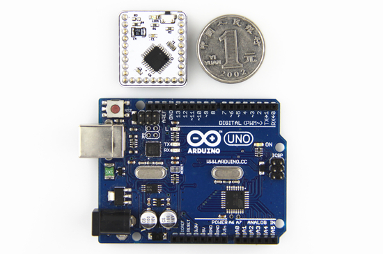 你可以將Femtoduino看成是一個小型化的Arduino,重量僅兩克。它采用Arduino的編譯器以及相對應(yīng)的庫。而且與Arduino UNO一樣,F(xiàn)emtoduino也以ATMega 328p為核心。不過特別遺憾的是,它沒有USB接口。所以在2013年初,他們推出帶有USB的新版Femtoduino。預(yù)計在今年1月19日,他們會發(fā)布集成Bluetooth 4.0和USB的Femtoduino,售價60美刀。新版本仍然采用ATMega 328p-MU,只是體積稍微增大了一些。