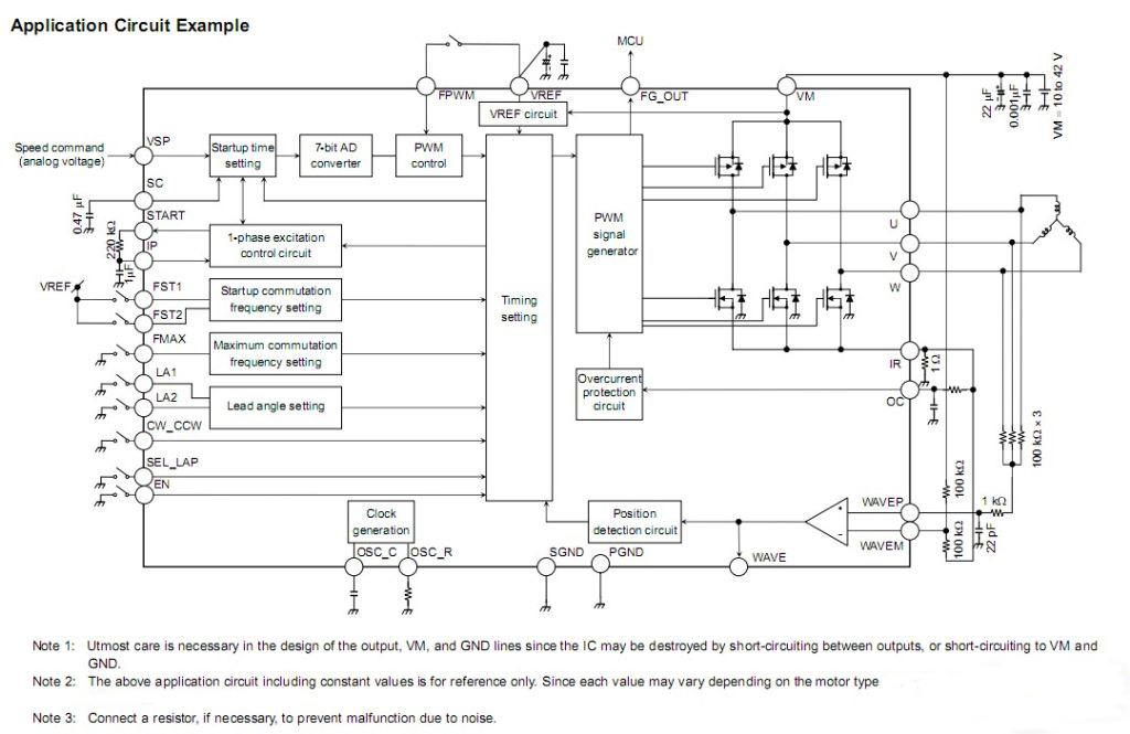TB6588FG無刷電機控制芯片除了以上被人們熟知的典型特征外,還可使馬達(不帶霍爾傳感器)的外形越來越小, 并有助于降低功率耗散。此外,用于平滑相電流轉(zhuǎn)換的搭接通導(dǎo)功能也可降低馬達驅(qū)動的噪音。