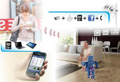 老人關(guān)懷照護(hù)系統(tǒng)設(shè)計(jì)有居家的監(jiān)控功能及和家人互動(dòng)功能,透過(guò)網(wǎng)路服務(wù),當(dāng)老人有照顧需求時(shí),可利用手勢(shì)辨識(shí)功能呼叫機(jī)器人至身邊;當(dāng)想觀看親友在臉書(shū)(Facebook)上的消息及圖片時(shí),可利用臉書(shū)動(dòng)態(tài)服務(wù),即時(shí)得知親友最新動(dòng)態(tài)訊息,也可透過(guò)網(wǎng)路通話與遠(yuǎn)方的家人進(jìn)行視頻聊天;同時(shí)也可隨時(shí)監(jiān)控,當(dāng)意外發(fā)生時(shí)可即時(shí)通知家人及醫(yī)護(hù)人員進(jìn)行處理。
