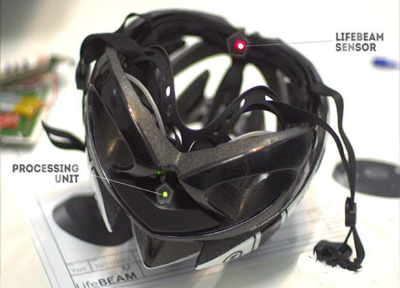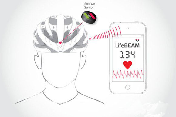 LifeBEAM科技公司利用其前創(chuàng)建的名為“量子”的微型感應(yīng)平臺,作為戰(zhàn)斗機(jī)飛行員頭盔的傳感系統(tǒng),可以監(jiān)控飛行員在飛行過程中的心率、血流和氧飽和度等指標(biāo)。一旦發(fā)現(xiàn)飛行員缺氧等可能威脅到生命的狀況,飛行員自身和地勤人員都可以及時(shí)發(fā)現(xiàn)。同樣的,利用與“量子”感應(yīng)平臺原理,智能頭盔前部安裝有一個(gè)耐汗的光學(xué)感應(yīng)器,通過與自行車騎手的前額輕輕觸動,從而可以測量佩戴者的脈搏,并將原始數(shù)據(jù)傳輸給頭盔后部的處理單元。經(jīng)過處理后的數(shù)據(jù)通過藍(lán)牙4.0或ANT+傳輸?shù)街悄苁謾C(jī)或電腦中,可實(shí)時(shí)顯示在設(shè)備的屏幕上。這樣就到達(dá)了最初的目的了。
