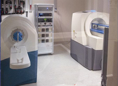 說(shuō)明:“由于雜散磁場(chǎng)非常弱,新的臺(tái)式3T MRI 掃描儀(左邊)可與實(shí)驗(yàn)室中的其它掃描儀放在一起”