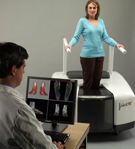 該設(shè)備可用來(lái)在承重和非承重狀態(tài)下進(jìn)行足部和踝關(guān)節(jié)的3D成像以及圖像重建等,可進(jìn)行術(shù)前評(píng)估、骨折脫位檢查、關(guān)節(jié)炎監(jiān)測(cè)以及骨髓炎早期檢測(cè)等。