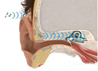 圖 通過將骨傳導助聽器植入中耳的位置,聽力障礙的病人可以恢復正常的聽力。