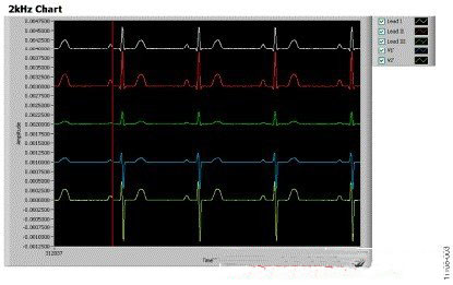 有關(guān)如何使用ADAS1000評(píng)估板的詳細(xì)說(shuō)明,請(qǐng)參考ADAS1000SDZ用戶(hù)指南。圖3顯示使用評(píng)估板軟件的典型屏幕截圖,評(píng)估板連接病人仿真器。