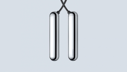 Tangram Design對跳繩進行了革新,將含有23個LED的專利柔性印制板,嵌入跳繩中。跳繩的快速運動被轉(zhuǎn)換為圖像,并在運動者的眼前呈現(xiàn)4位的數(shù)字,宛若魔法,來顯示計數(shù)或者熱量消耗。這個智能跳繩Smart Rope有著星球大戰(zhàn)中光劍一樣的把手,內(nèi)里包含藍牙4.0無線發(fā)射器連接手機等智能終端,磁傳感器則負(fù)責(zé)跳繩計數(shù)。