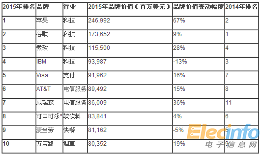 2015年 BrandZ 最具價(jià)值全球品牌100強(qiáng)