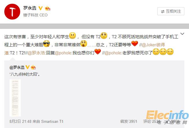 發(fā)售延期?羅永浩發(fā)微博透露T2細(xì)節(jié)