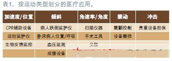 通過一個功耗極低的緊湊器件來精確檢測和測量運動的能力,幾乎對任何涉及到運動的應用都是有價值的,甚至對那些運動要求不是很關鍵的應用也是有價值的。表1按運動類型列出了一些基本醫(yī)療應用。需要解決更多挑戰(zhàn)的更高級應用將在稍后討論。
