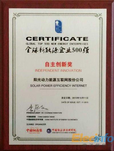 綠能寶 新能源企業(yè)500強(qiáng) 自主創(chuàng)新獎(jiǎng)