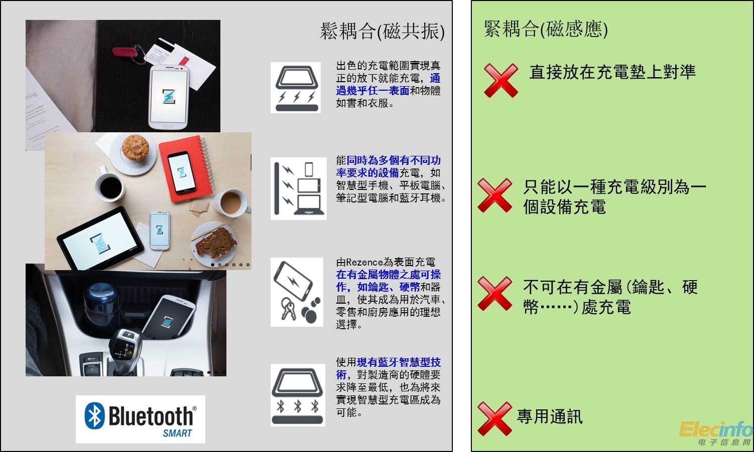 標(biāo)準(zhǔn)的統(tǒng)一是無線充電得以大量普及的重要因素。AirFuel Alliance已發(fā)布Rezence基本系統(tǒng)標(biāo)準(zhǔn)(BSS)1.2.1標(biāo)準(zhǔn),并與中國通訊標(biāo)準(zhǔn)化協(xié)會(huì)(CCSA)、日本橫須賀研究園寬帶無線論壇(BWF)和韓國電訊技術(shù)協(xié)會(huì)(TTA)簽署了合作協(xié)議,旨在采納該最新標(biāo)準(zhǔn)作為各自獨(dú)立管理的國家無線電力傳輸技術(shù)標(biāo)準(zhǔn)元素。此外,藍(lán)牙技術(shù)聯(lián)盟(SIG)也已發(fā)布包含Rezence無線充電標(biāo)準(zhǔn)的藍(lán)牙低能耗(BLE)配置檔。美國已通過首個(gè)松耦合無線充電的發(fā)射器,預(yù)計(jì)采用松耦合的終端電子設(shè)備將于今年底或2016年初面世。相信配置發(fā)射器和接收器的基礎(chǔ)設(shè)施就緒,松耦合的發(fā)展指日可待。