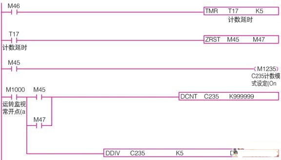 圖2 實現(xiàn)顯示當(dāng)前位置的高速計數(shù)程序段
