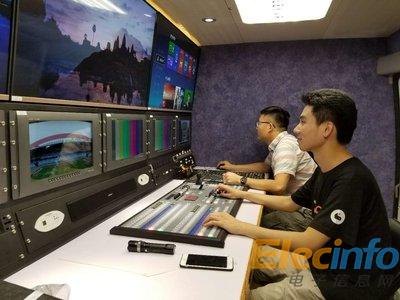 工作人員在轉(zhuǎn)播車內(nèi)進行調(diào)試