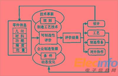 上圖表明,輸入信息是經(jīng)過(guò)處理的設(shè)計(jì)信息模型,核心過(guò)程是對(duì)產(chǎn)品的可制造性評(píng)價(jià),其主要依據(jù)有兩類(lèi):