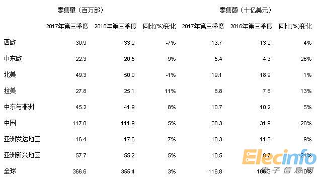——第三季度全球智能手機(jī)零售量的強(qiáng)勁增長得益于拉美、中東歐市場的推動