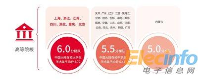 17所中國大陸高等院校的雅思考生平均總成績都與全球平均水平在同一分?jǐn)?shù)梯隊(duì)(6.0分梯隊(duì)),表現(xiàn)最為突出的是復(fù)旦大學(xué)、中山大學(xué)和南開大學(xué)。各地區(qū)中學(xué)雅思考生平均成績略低于高等院校考生,但深圳教育國際交流學(xué)院和杭州外國語學(xué)??忌钠骄偝煽兩踔脸^復(fù)旦大學(xué)。