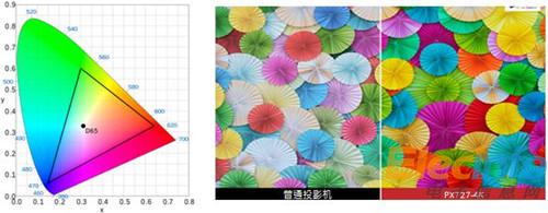 對(duì)于追求色彩還原度的用戶來(lái)說(shuō),優(yōu)派PX727-4K投影機(jī)配備的四倍速RGBRGB六段式色輪利用涂層對(duì)R/G/B的光譜進(jìn)行過(guò)濾,以紅綠藍(lán)三種基色對(duì)色調(diào)和飽和度進(jìn)行修改,使投射的影像色彩流暢自然。此外,PX727-4K支持96%的Rec. 709寬廣色域并兼容Rec.2020,寬廣的色域使投影的照片、視頻及電影的色彩真實(shí)呈現(xiàn),減少色彩再現(xiàn)的偏差,從而接近影院的色彩顯示畫(huà)質(zhì)。