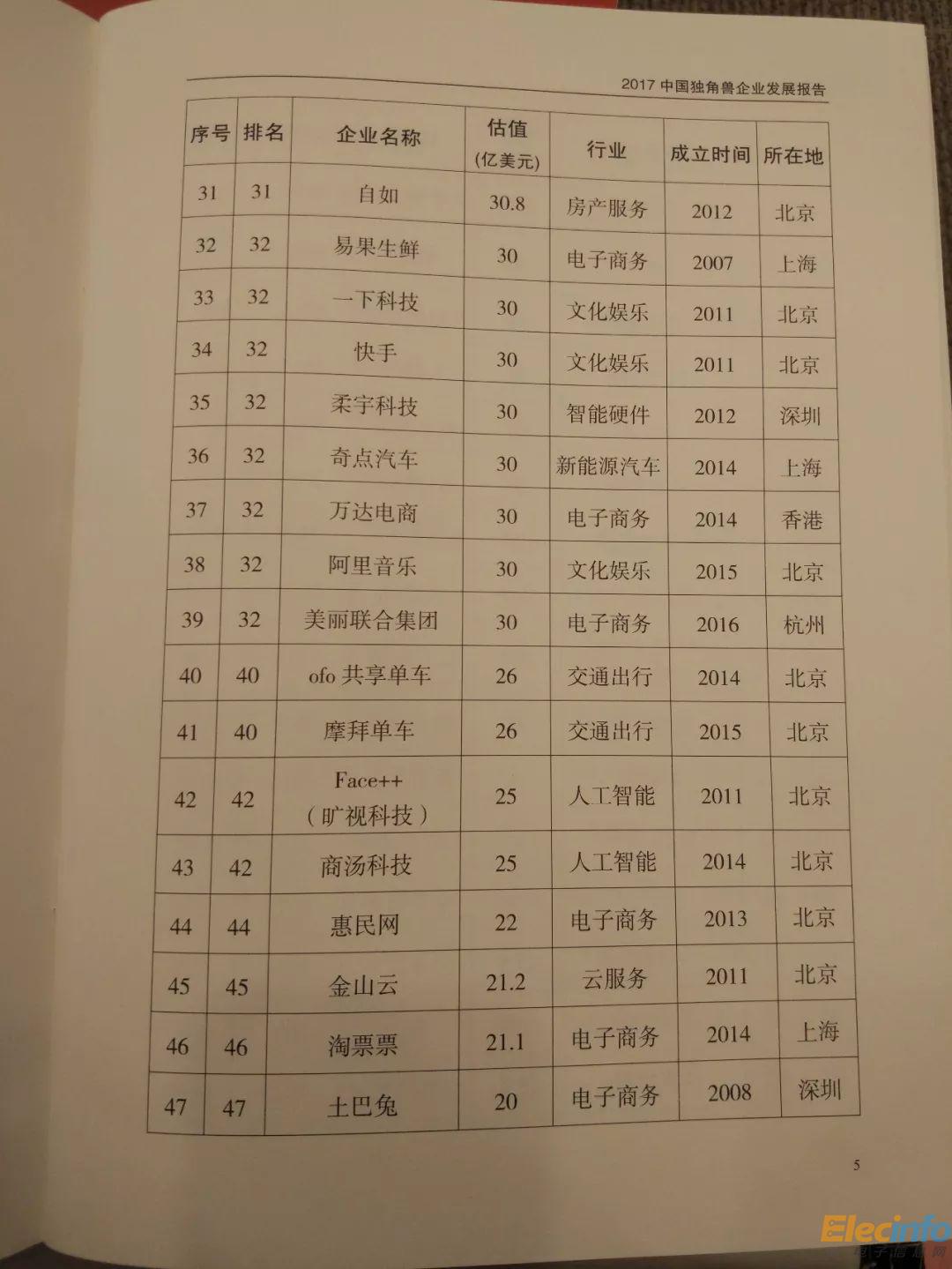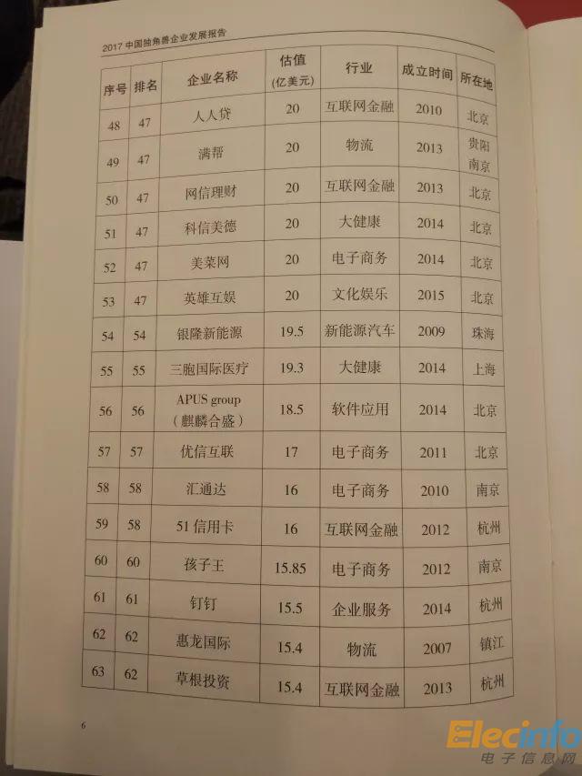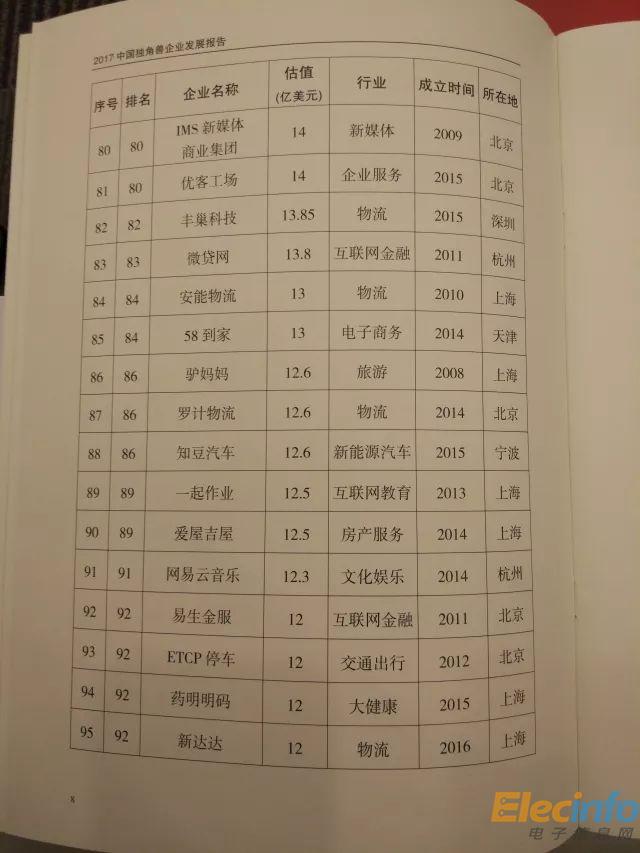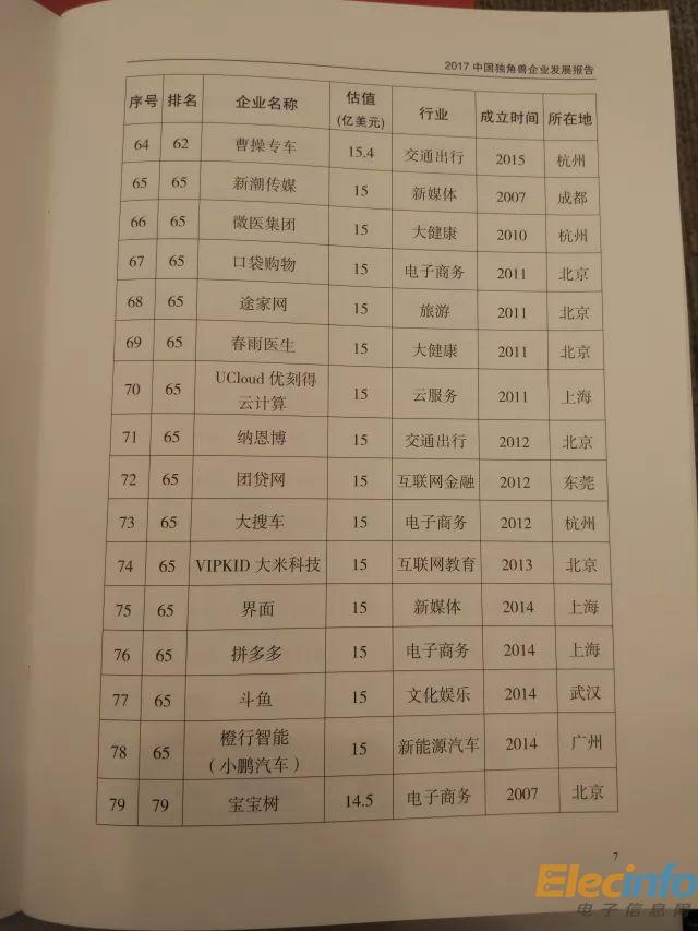 科技部 2017年中國(guó)獨(dú)角獸企業(yè)榜單