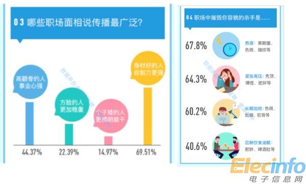 調(diào)查中,求職者認(rèn)為外貌是僅次于工作經(jīng)驗(yàn)和學(xué)歷的影響因素,但70.6%的雇主表示招聘是否看臉會(huì)視行業(yè)和崗位而定。同時(shí)報(bào)告指出,職場(chǎng)人士熬夜、緊張高壓、長(zhǎng)期加班、應(yīng)酬等行為,對(duì)職場(chǎng)人士的外貌會(huì)產(chǎn)生負(fù)面的影響。