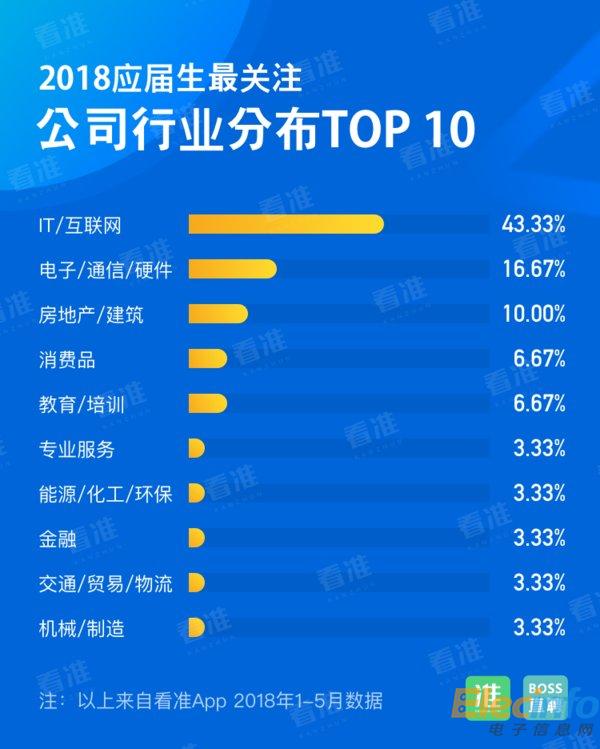 看準(zhǔn)網(wǎng):2018應(yīng)屆生最關(guān)注前30公司的行業(yè)分布