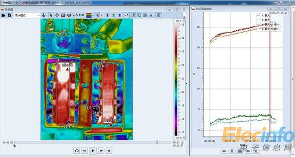 鋰電池充放電實(shí)驗(yàn),用來(lái)測(cè)試性能穩(wěn)定性,以防使用中出現(xiàn)嚴(yán)重發(fā)熱等情況。利用 FOTRIC 288熱像儀全輻射熱像視頻流功能,可以捕捉實(shí)驗(yàn)中整個(gè)電池任意點(diǎn)的溫度,且后期可做任意分析。