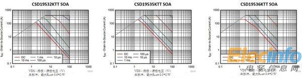 例如,如果設(shè)計輸入電壓為48V,并且希望在8ms內(nèi)限制輸出電流不超過2A,設(shè)計師可以參考CSD19532KTT、CSD19535KTT和CSD19536KTT SOA的10ms曲線(圖2),并推斷出后兩種設(shè)備可能行得通,而CSD19532KTT則不行。由于CSD19535KTT已經(jīng)擁有足夠余量,對此種應(yīng)用來說,更昂貴的CSD19536KTT可能提供過高的性能。