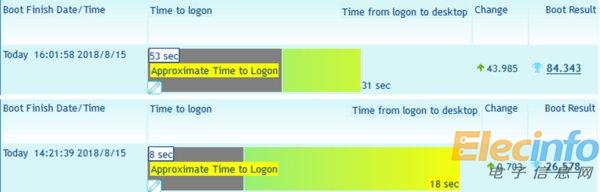 在實(shí)際應(yīng)用中,首先從最基本的Windows操作系統(tǒng)啟動進(jìn)行了體驗,在僅使用機(jī)械硬盤的情況下,進(jìn)入操作系統(tǒng)直至啟動程序、桌面完全準(zhǔn)備完畢需耗時約84.343秒,而在開啟傲騰內(nèi)存加速后,這一時間則被縮短至26.578秒,系統(tǒng)啟動時間縮短了達(dá)68.5%。