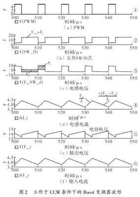 對圖1所示電路,借助PSpice進行仿真,獲得如圖2所示的波形圖。這是典型的電感電流連續(xù)導通模式(CCM)。