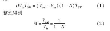 可見,在理想情況下,D越接近1,輸出電壓將趨于無窮大。實際上,只要輸出一定的電流,就難以得到傳輸系數(shù)超過4~5的升壓變換器。