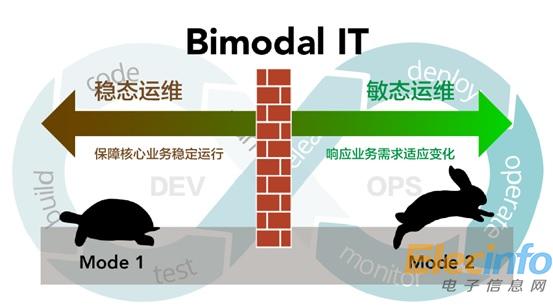 Gartner 早在2014年提出了雙模 IT (Bimodal) 的理念。雙模 IT 是指兩種不同的 IT 工作模式: