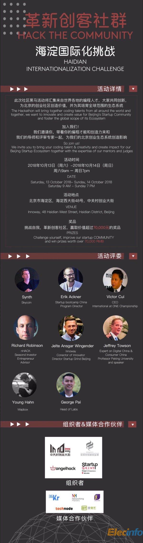 2018年10月13日-14日,Skycoin創(chuàng)始人Synth,作為評(píng)委之一,將出席北京海淀區(qū)中關(guān)村創(chuàng)業(yè)大街主辦的創(chuàng)新周黑客馬拉松活動(dòng)。