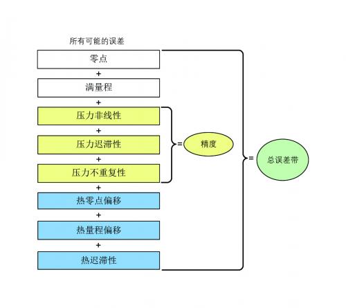 通常,制造商并不會(huì)在產(chǎn)品數(shù)據(jù)手冊(cè)上列出總誤差范圍,而是單獨(dú)列出各種誤差。各類誤差相加時(shí)(即總誤差范圍),總誤差范圍就會(huì)非常大。因此,總誤差范圍可作為選擇傳感器的重要選擇依據(jù)。