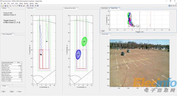 圖 2:左側(cè)的圖表清楚地顯示了使用IWR1642檢測(cè)和跟蹤兩輛車的過程