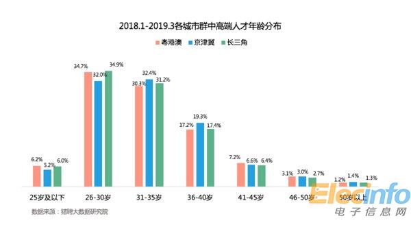 2018.1-2019.3各城市群中高端人才年齡分布