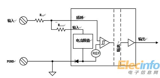 隔離數(shù)字輸入充當(dāng)提供從傳感器輸入或其他輸入類型到主機(jī)控制器接口的邏輯輸出的電流隔離的基本功能。與數(shù)字隔離器不同,隔離數(shù)字輸入的輸入級(jí)(如圖2所示)包括用戶設(shè)置輸入閾值和集成電流限制,允許9V至60V范圍內(nèi)的輸入電壓轉(zhuǎn)換為邏輯輸出。在最簡(jiǎn)單的形式中,隔離數(shù)字輸入用作隔離比較器,具有一些易于設(shè)計(jì)的附加功能。