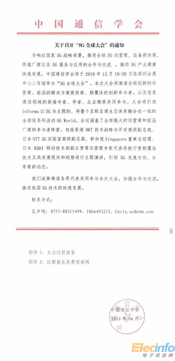 關(guān)于召開(kāi)5G全球大會(huì)的通知