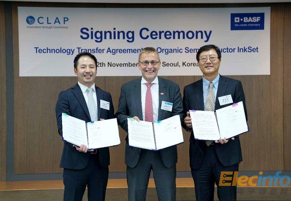 2019年11月12日,韓國(guó)顯示配件及傳感器行業(yè)的領(lǐng)先企業(yè) CLAP(CEO:金星虎)與全球化工公司巴斯夫 (BASF) 在韓國(guó)首爾簽訂 Organic Semiconductor InkSet 技術(shù)轉(zhuǎn)讓合同。