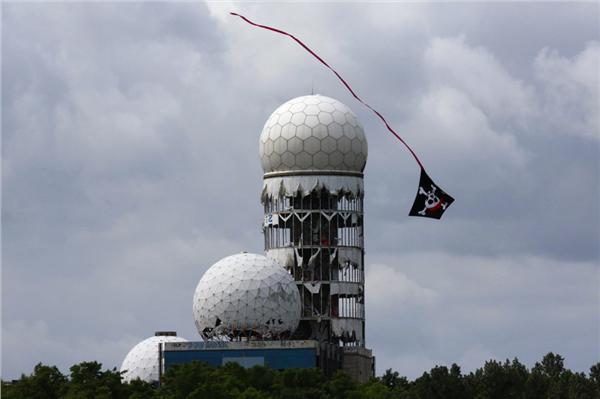 一個(gè)風(fēng)箏飛過設(shè)于德國柏林的美國國安局廢棄監(jiān)聽站