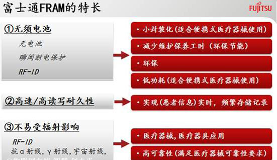 圖2.富士通半導(dǎo)體FRAM適用于醫(yī)療應(yīng)用的三大優(yōu)勢(shì)